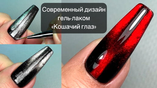 Дизайн гель-лаком кошачий глаз на Новый Год | Дизайн на длинные и короткие ногти