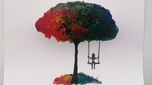 Что нарисовать когда грустно |девушка на качелях, арт дерево