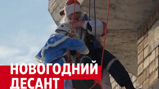 Новогодний десант. В одну из российских больниц Дед Мороз и Снегурочка спустились на страховочных канатах
