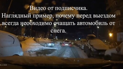 Видео пример почему водителю перед выездом необходимо полностью отряхнуть свой автомобиль от снега.