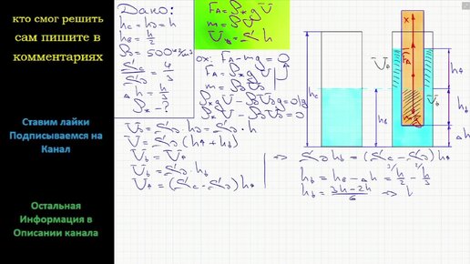 Физика В сосуд с некоторой жидкостью, налитой до середины высоты, опускают поплавковый датчик температур цилиндрической формы, высота