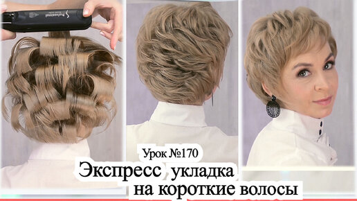 Укладка на короткие волосы утюжком.Прическа .Урок№170