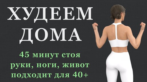 🔥 Худеем дома без прыжков: тренировка стоя на 45 минут (кардио, руки, ноги, живот)