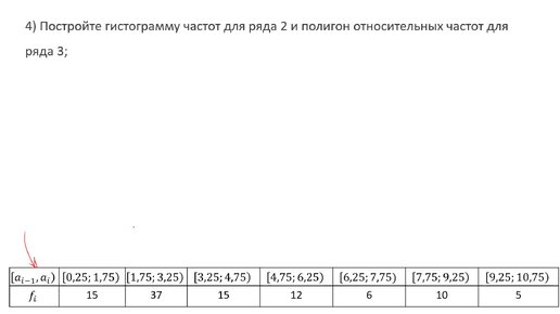 Построение гистограммы частот для интервального статистического ряда и полигона относительных частот для точечного ряда (РЗ 9.4)