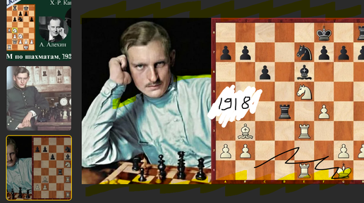 Могу много раз смотреть как Алехин играет "морозный" гамбит в Новый год: уверенной рукой маэстро побеждает у Бориса Верлинского (Одесса, 18)