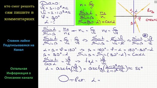 Физика Найдите угол падения светового луча на поверхность стекла, если преломленный луч перпендикулярен отраженному Скорость света в воздухе