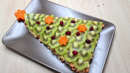 Салат Новогодняя елочка с курицей и киви. Делюсь вкусным и простым салатом