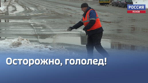 Тротуары как каток. В Пскове устраняют последствия ледяного дождя