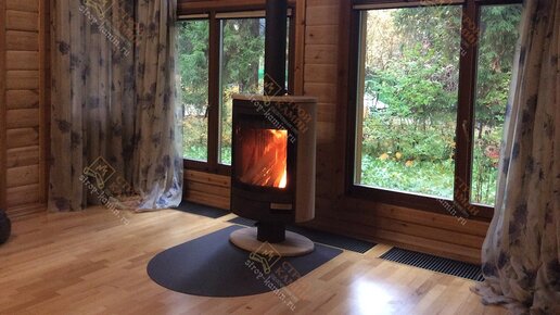 Современный дровяной печь-камин Stromboli N в доме из бруса - продажа и установка под ключ мастерами Строй-Камин