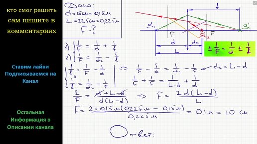 Физика Тонкая собирающая линза с фокусным расстоянием F находится между двумя точечными источниками света на расстоянии d = 15 см от одного