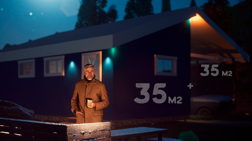 Теплый дом с навесом. 35 + 35 м2