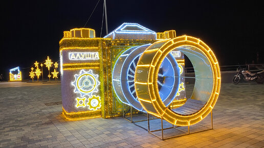 Вечерняя Алушта в формате «было-стало». Новогодние инсталляции. Крым 2023 Новый год.