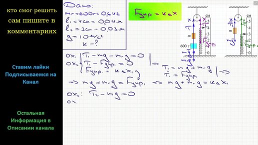 Физика После того как груз массой 600 г аккуратно отцепили от груза m пружина сжалась так как показано на рисунке и система пришла в