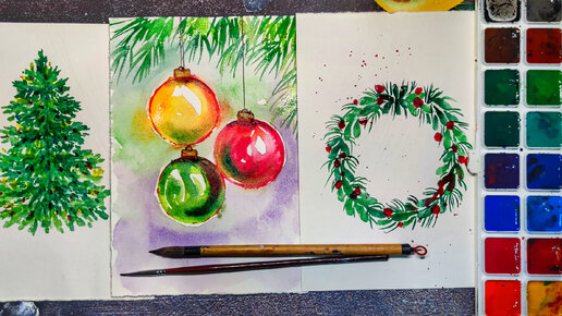 Такие новогодние открытки сможет нарисовать даже тот кто никогда не рисовал