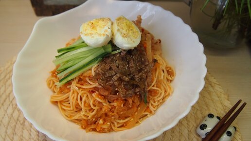 Корейская кухня: Холодная лапша с кимчи или Пибим куксу (비빔국수)
