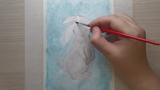 Зимний рисунок гуашью. Серый кролик.