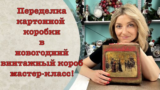 Переделка картонной коробки в новогодний винтажный короб мастер-класс!
