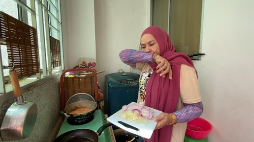 Мусульманка показывает мне, как надо готовить. Главный секрет - надеть на голову платок, и тогда любое дело получится