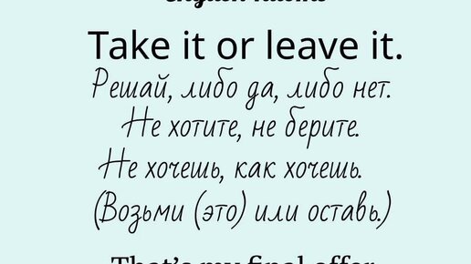 Aнглийские идиомы/English idioms 👉Take it or leave it 👉Sit on the fence