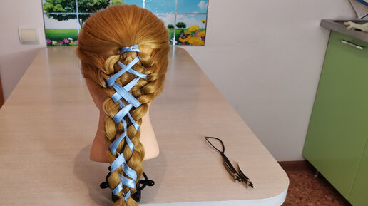 ПРИЧЁСКА ДЛЯ ДЕВЧОНОК С КОСАМИ И ЛЕНТОЙ
