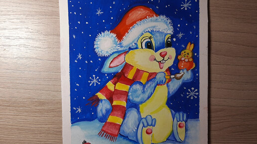 Как нарисовать новогоднюю открытку с зайцем - рисуем новогоднего зайца