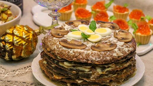 Приготовьте на новый год вот такой печеночный торт с грибами. Даже ненавистники печенки его одобряют.