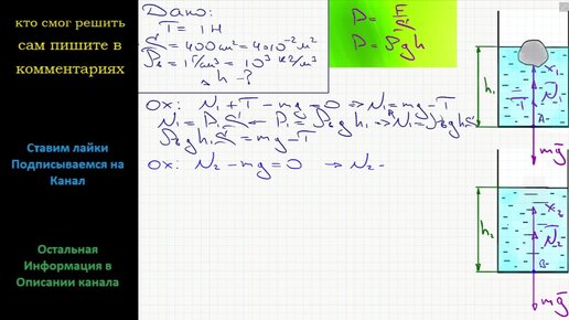 Физика Кусок льда привязан нитью ко дну цилиндрического сосуда с водой (см. рисунок). Над поверхностью воды находится некоторый объем льда