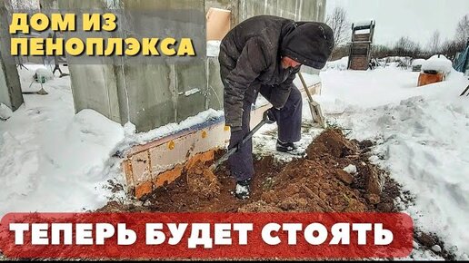 Спасаю ФУНДАМЕНТ пристройки из пеноплэкса! ИСПЫТАЛ армопояс залитый зимой!