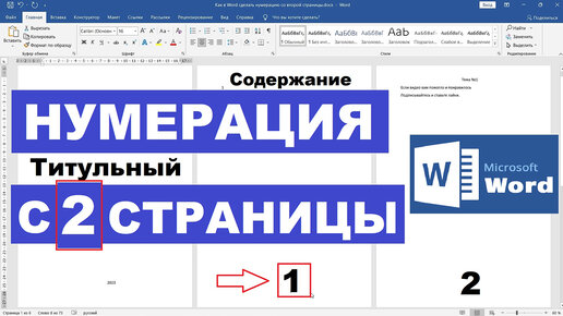 Как в Word сделать нумерацию с 2 страницы и убрать номер с титульного листа