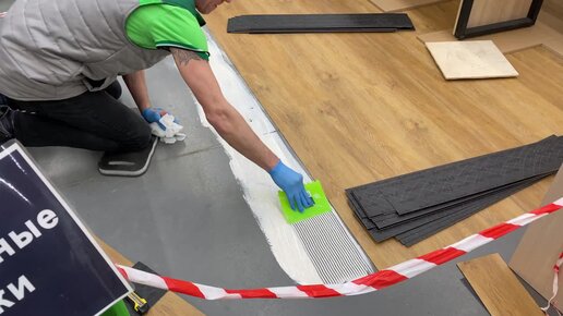 Укладка кварцвиниловой плитки на клей к бетонному основанию.