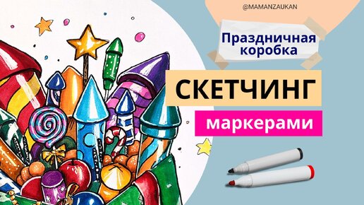 Как нарисовать праздничную коробку маркерами. Спидпейнт