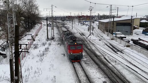 Встреча пассажирского поезда под электровозом ЭП1-051 с грузовым поездом под электровозом 2ЭС5К-495 на станции Котельнич-I