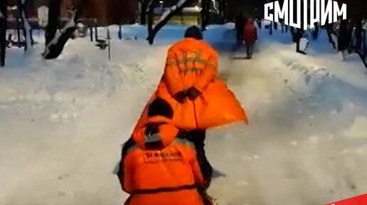 Новый способ посыпки тротуаров от коммунальщиков