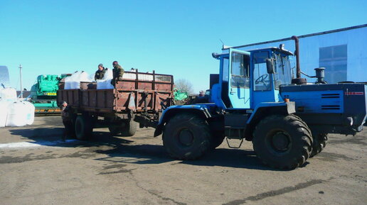 Завоз и разгрузка удобрения тракторами: МТЗ-1221В, Т-150К, ТО-30, АП-4014.