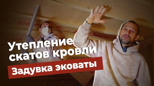 Утепление скатов кровли эковатой. Задувка Эковаты