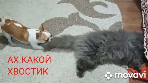 Бонику очень нравится хвост кота