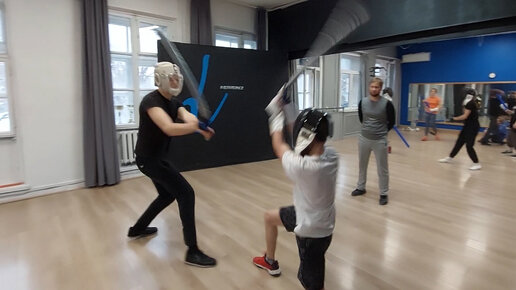 Японское фехтование кендзюцу - спарринг на длинных мечах на тренировке в Katana Club