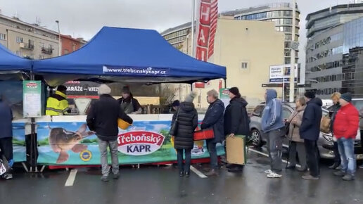 В Праге традиция на Рождество готовить рыбу Карпа.Большая очередь за рыбой сегодня.Как чехи отмечают рождество