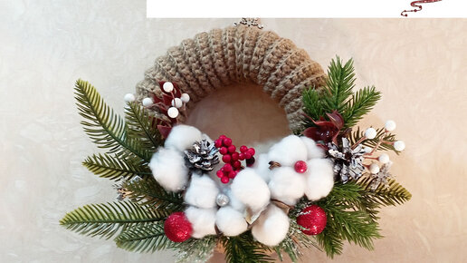 Новогодний , Рождественский венок из джута. Обзор готовой работы !