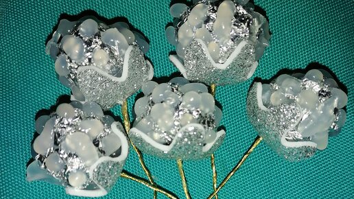 Новогодний декор-хрустальные цветочки из фольги и термоклея.