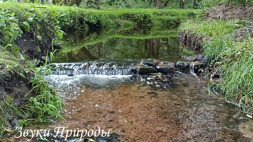 Лёгкое журчание ручья на фоне пения птиц в лесу.