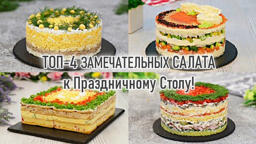 ТОП-4 ЗАМЕЧАТЕЛЬНЫХ ПРАЗДНИЧНЫХ САЛАТА! — Самые Лучшие Слоёные Салаты на Праздничный стол!