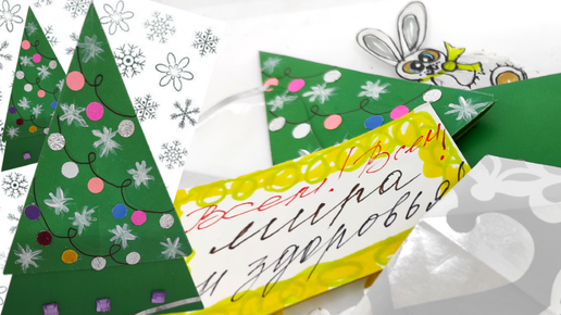 Интересная, новая форма открытки. Елочка пожеланий. Оригами🎄