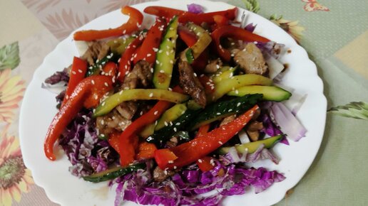 Тёплый салат по тайски, простой и вкусный ужин за 20 минут, из того, что есть в холодильнике