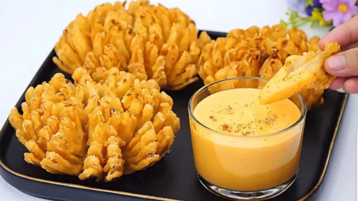 Рецепт жареного лука с сырным соусом! ХРИЗАНТЕМА вкусный хрустящий лук