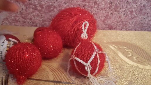 DIY \ Новогодний шар / Вязание спицами плюс макраме