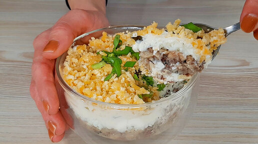 Простой и вкусный рецепт салата для новогодних встреч с друзьями! Рецепт салата с консервированной рыбой