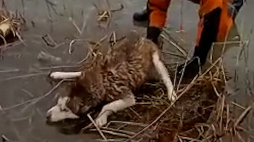 В Астрахани спасли тонущую собаку