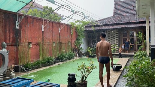 Вот это жизнь - под дождем и в бассейне!