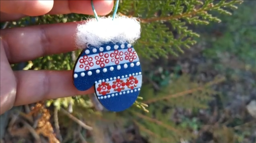 Простая роспись деревянной елочной игрушки "Рукавичка"
